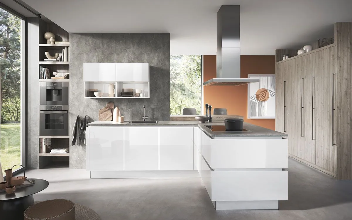 Une cuisine en L utilise profitablement l’espace disponible dans la pièce. C’est une configuration idéale pour toutes les superficies, de la grande à la petite cuisine. Les repas se préparent plus rapidement et facilement grâce à des zones de préparation, de cuisson et de rangement bien organisées.